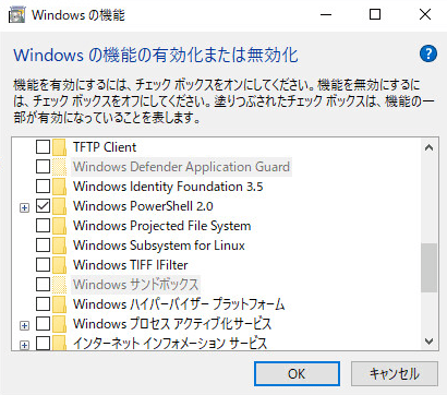 (例) バージョン1809:「Device Lockdown」、「Legacy Components」