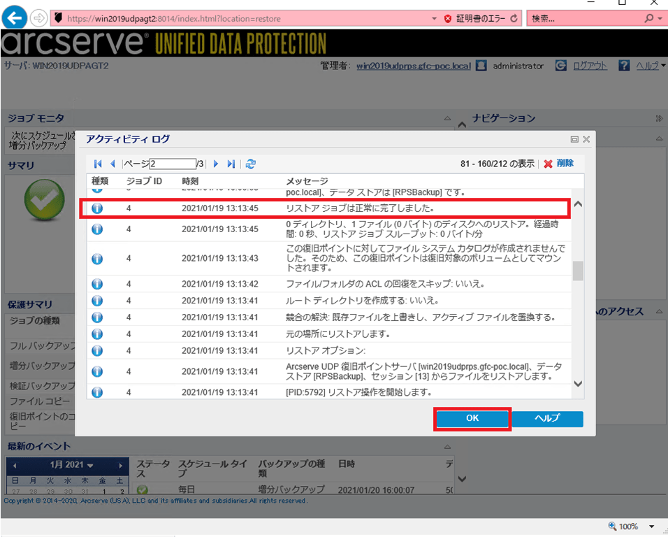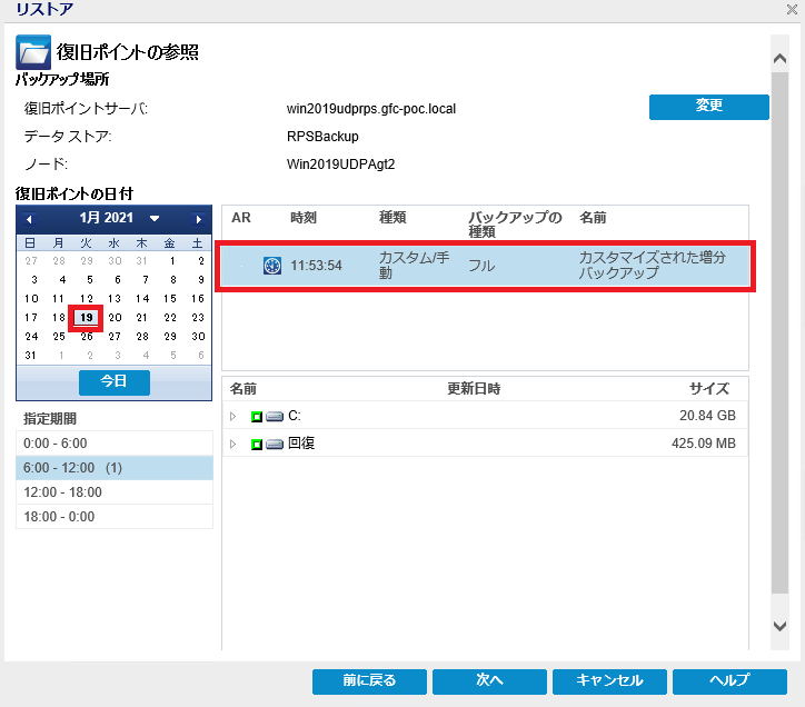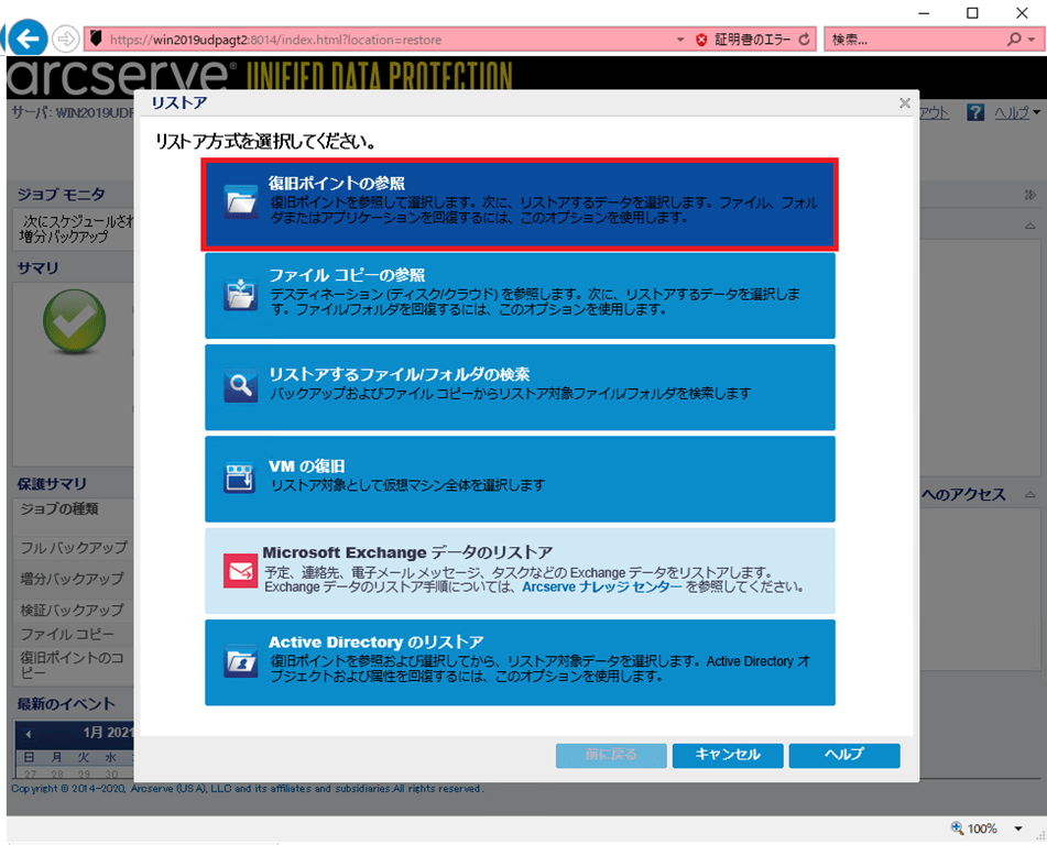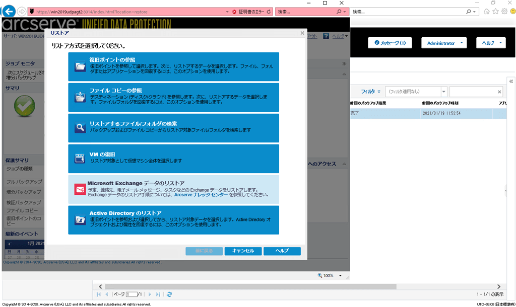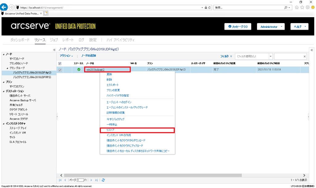 【Arcserve UDP RPS の管理画面からデータリストア】