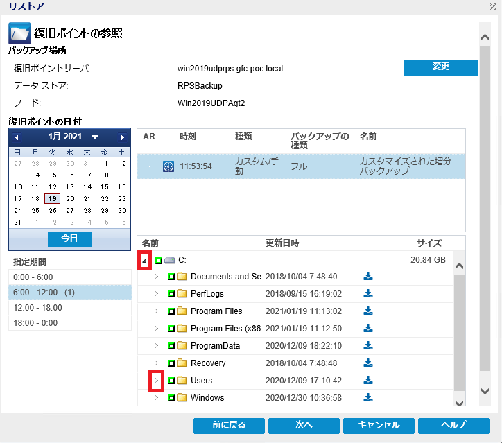 【エクスプローラ ライクな画面からデータリストア】