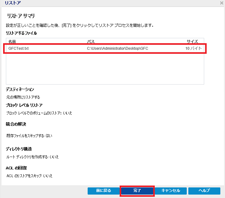 ※今回は元のフォルダにリストアしていますが、任意のフォルダにリストアすることも可能です。![]()