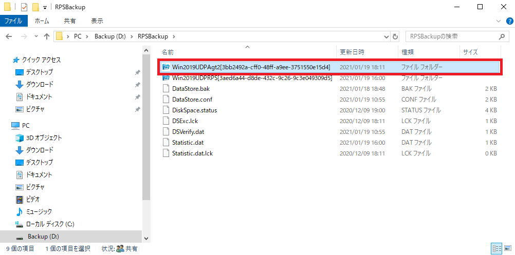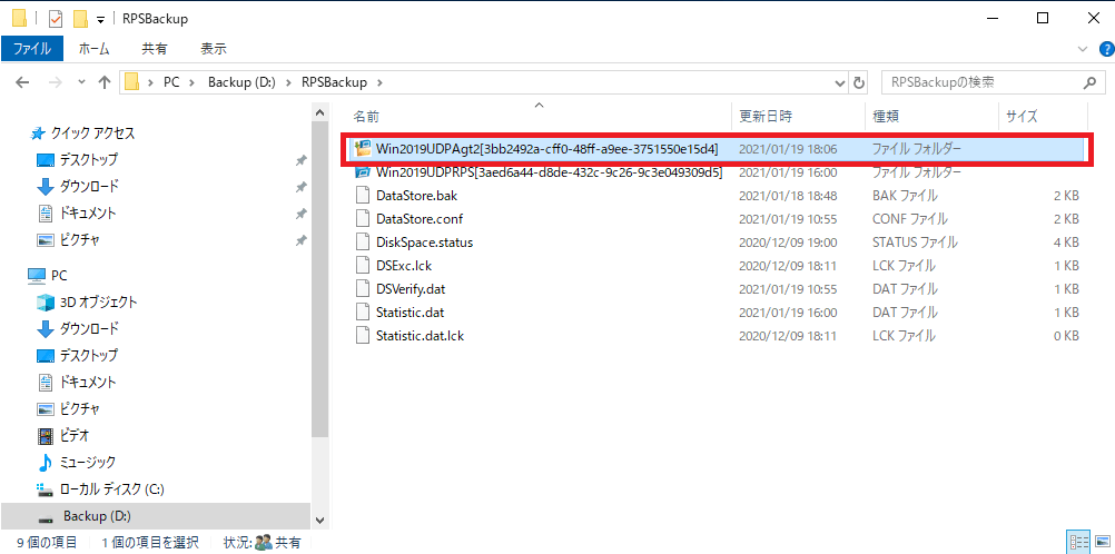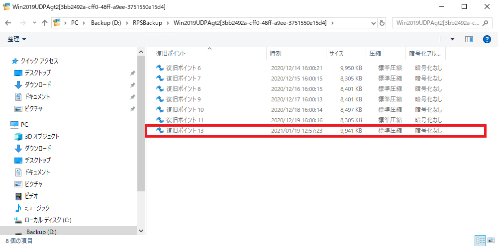 ⑭Agent サーバーにてエクスプローラを起動し、ファイルが保存されているフォルダを開き、ファイルがリストアされていることを確認します。![]()