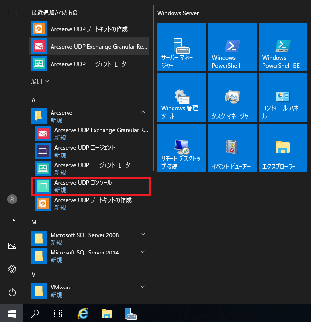 ①スタートメニューの ”Arcserve UDP コンソール”のアイコンをクリックします。![]()